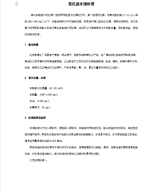 焦化廢水預處理工藝流程